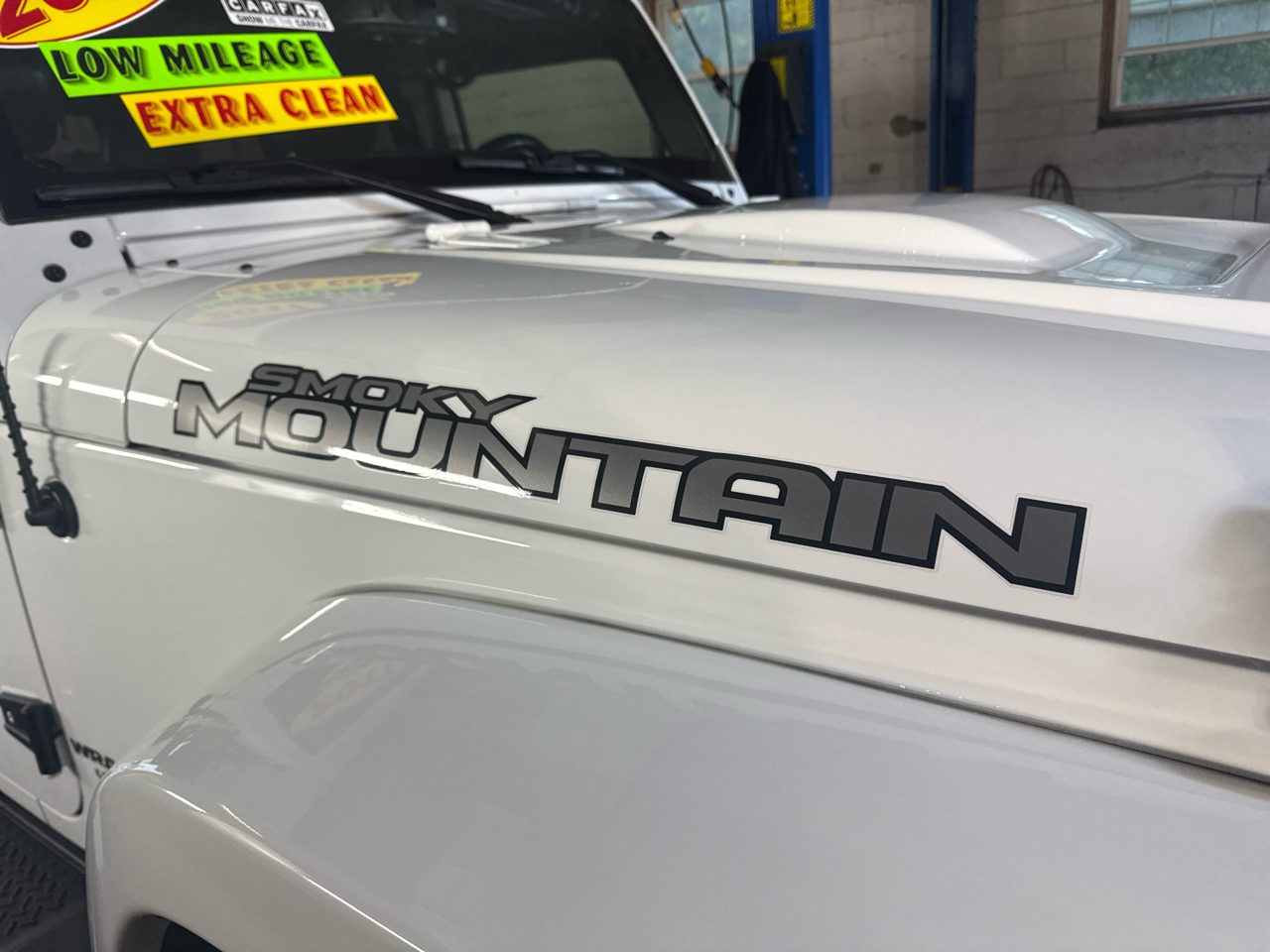 THIS BEAUTIFUL GARAGE KEPT 2017 JEEP WRANGLER SMOKEY MOUNTAIN EDITION HAS NO RUST BOUGHT HERE 2 YRS AGO AND TRADED HERE COMES WITH A PAINTED WHITE FACTORY HARD TOP NOT IN THE PICS THIS TOP IS ALSO A BEAUTIFUL BRAND NEW CANVAS TOP , 4 INCH LIFT KIT WITH ROCK CRAWLER STABLIZER BARS ,ALPINE STEREO -AUX BLU TOOTH-NAVIGATION SAT RADIO , POWER WINDOWS POWER LOCKS , THIS IS A RUST FREE WRANGLER AND PRICED TO SELL SORRY ABOUT PICTURES HAD A FEW DAYS OF RAIN HURRY THIS WONT LAST